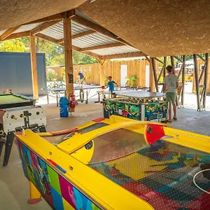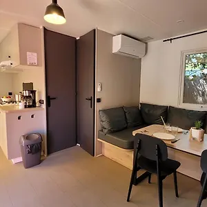 The rooms at Camping Hourtin include an air conditioner, as well as media facilities like high-speed internet and a multi-channel television. They come equipped with tea and coffee making facilities, a stove top, and kitchenware.