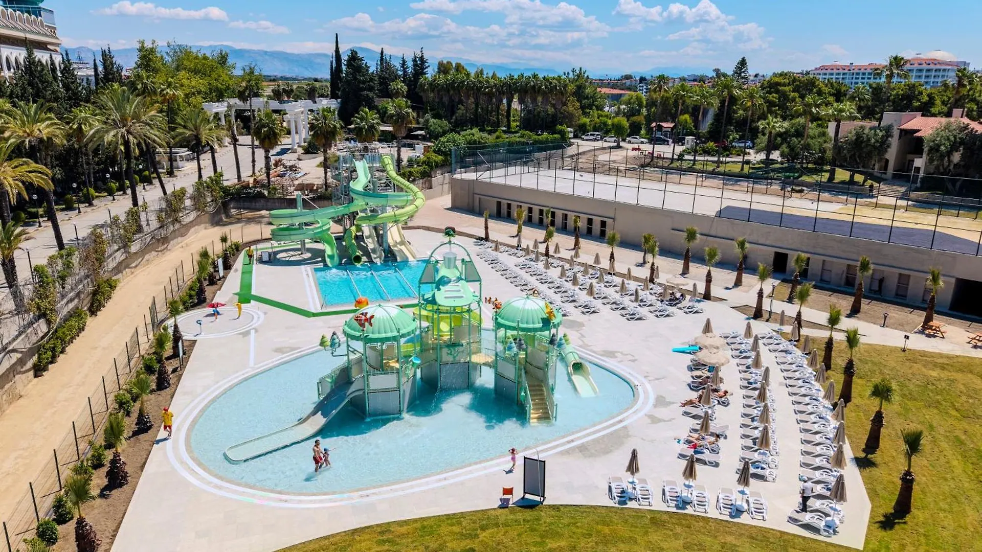 Club Melas Prive hotel offers an aqua park and water slides to make your stay more enjoyable. This Side hotel arranges lawn tennis, basketball, and racquetball.