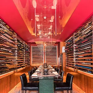 The à la carte Vilu restaurant in Conrad Maldives Rangali Island Hotel offers dishes for dinner. The restaurant serves Mediterranean cuisine. There is also a beach bar. The bar area includes a lounge and a wine cellar.