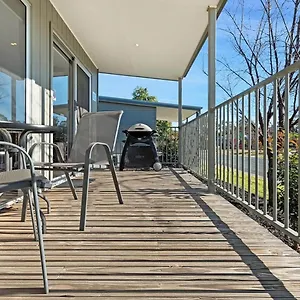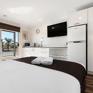 The Discovery Parks - Moama Waters offers rooms with a balcony and a seating area featuring ironing equipment and an air conditioner, along with a flat-screen TV with satellite channels. They come equipped with an electric kettle, a refrigerator, and kitchenware. Bathrooms, fitted with a separate toilet and a shower, also provide guests with a hairdryer and complimentary toiletries.