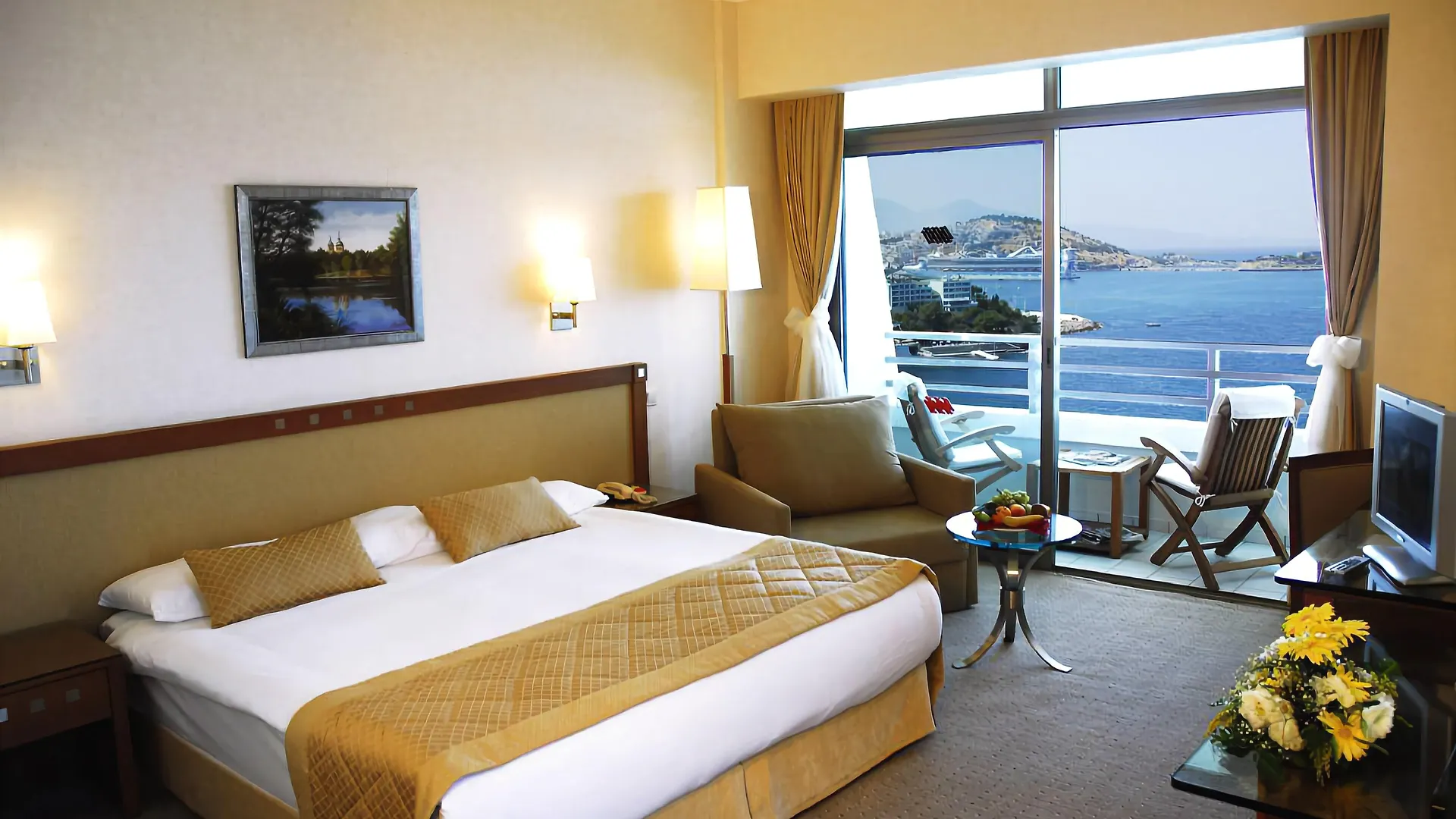 The luxurious Korumar Hotel Deluxe Kusadasi with 2 private beaches is 2.8 km from Ephesus Convention Center. Featuring 357 rooms with views of the mountain, this 5-star hotel is 10 minutes by car from the shopping mall "Kusadasi Grand Bazaar".