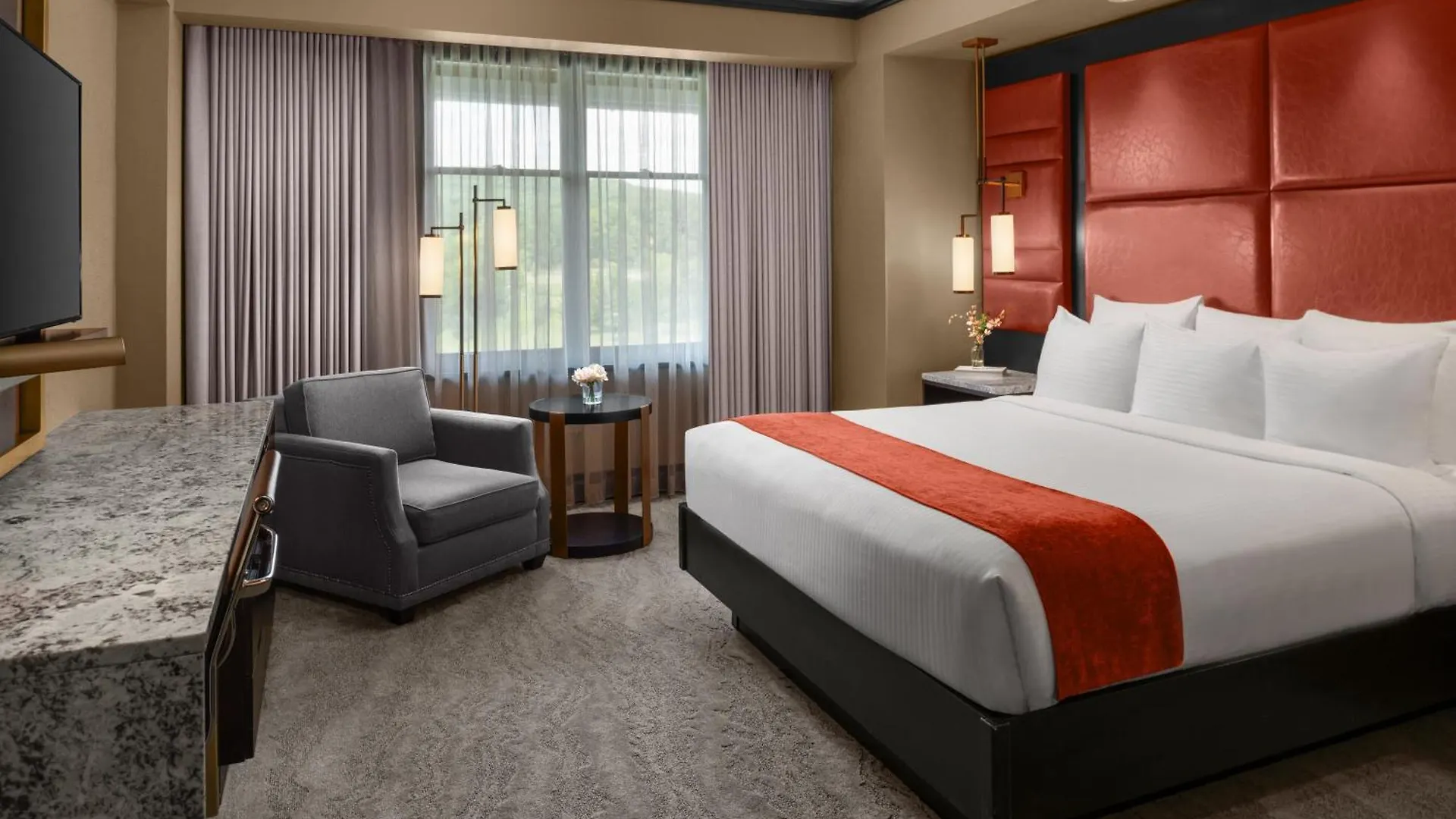 The Mount Airy Casino Mount Pocono features 283 rooms equipped with high-speed internet and a cable TV with on-demand films as well as a mini-fridge-bar, coffee and tea makers. An iron with ironing board and climate control are featured for guests' comfort.