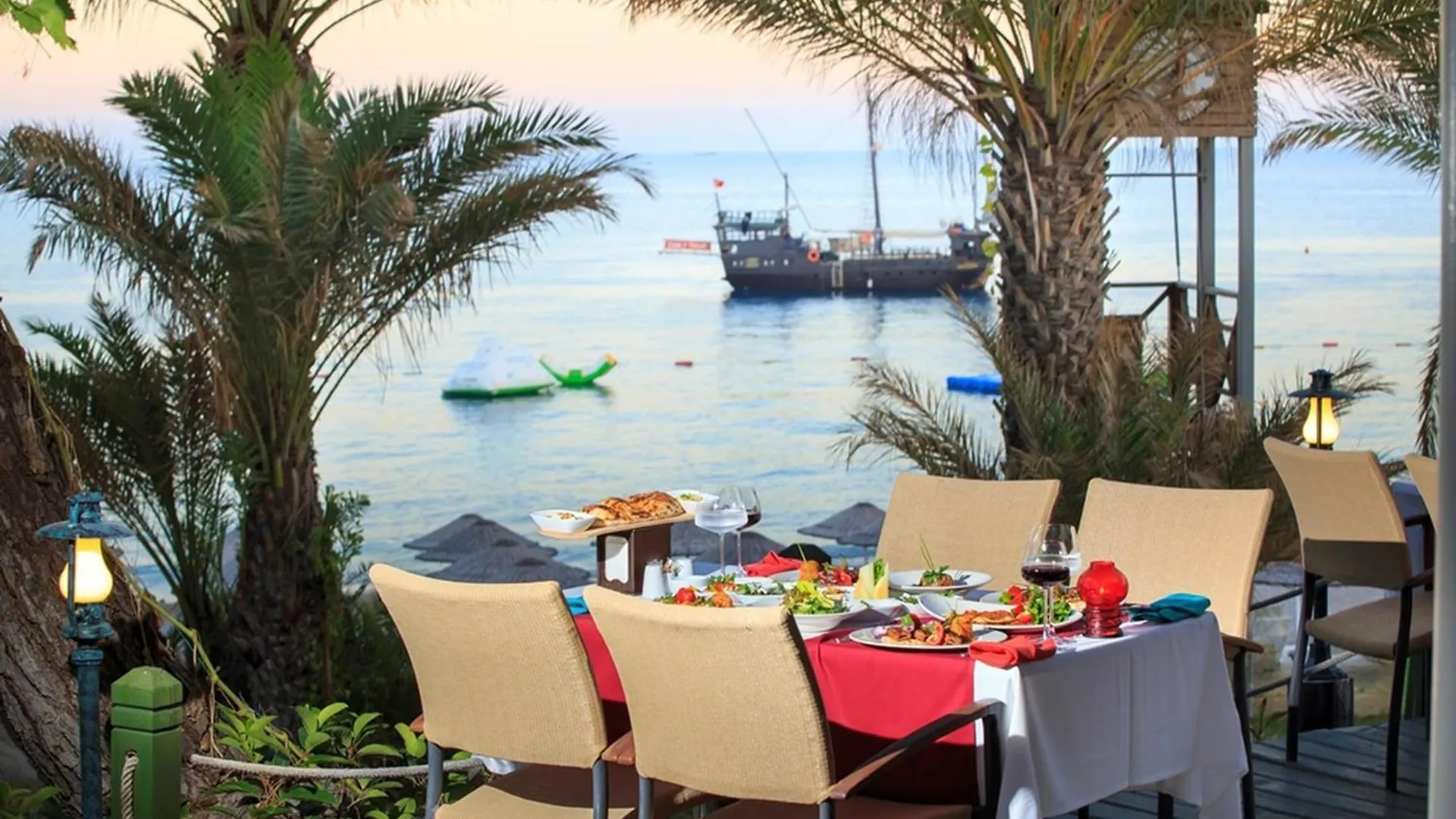Pirates Beach Club hotel includes 4 restaurants serving wide variety of cuisines including Italian and Turkish.